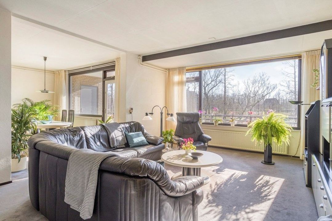 De woonkamer is heerlijk licht dankzij de gunstige ligging op het zuidoosten. Er is een zitkamer en een eetkamer en indien gewenst kunnen hier weer 2 kamers gecreëerd worden. Vanuit de eetkamer is er toegang tot het balkon van ca. 8 m², voorzien van een vaste kast. De halfopen keuken in hoekopstelling beschikt over diverse inbouwapparatuur, waaronder een koelkast, vriezer, oven en gaskookplaat, en heeft een leuk barretje.
